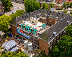 Het huidige gebouw wordt van binnen veranderd. De buitenzijde blijft gelijk. Het betreft een rijksmonument, waardoor we veel historische kenmerken in stand houden. Na de verbouw krijgt het huidige gebouw naar verwachting energielabel A++.