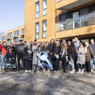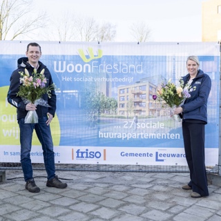 Met de onthulling van een groot bouwdoek trapten WoonFriesland en Friso woensdag 26 februari de bouw af van 27 nieuwe appartementen aan de Aldlânsdyk in Leeuwarden. Deze mijlpaal betekent de start van een ambitieus plan van het sociaal verhuurbedrijf om de komende jaren 2000 woningen toe te voegen.