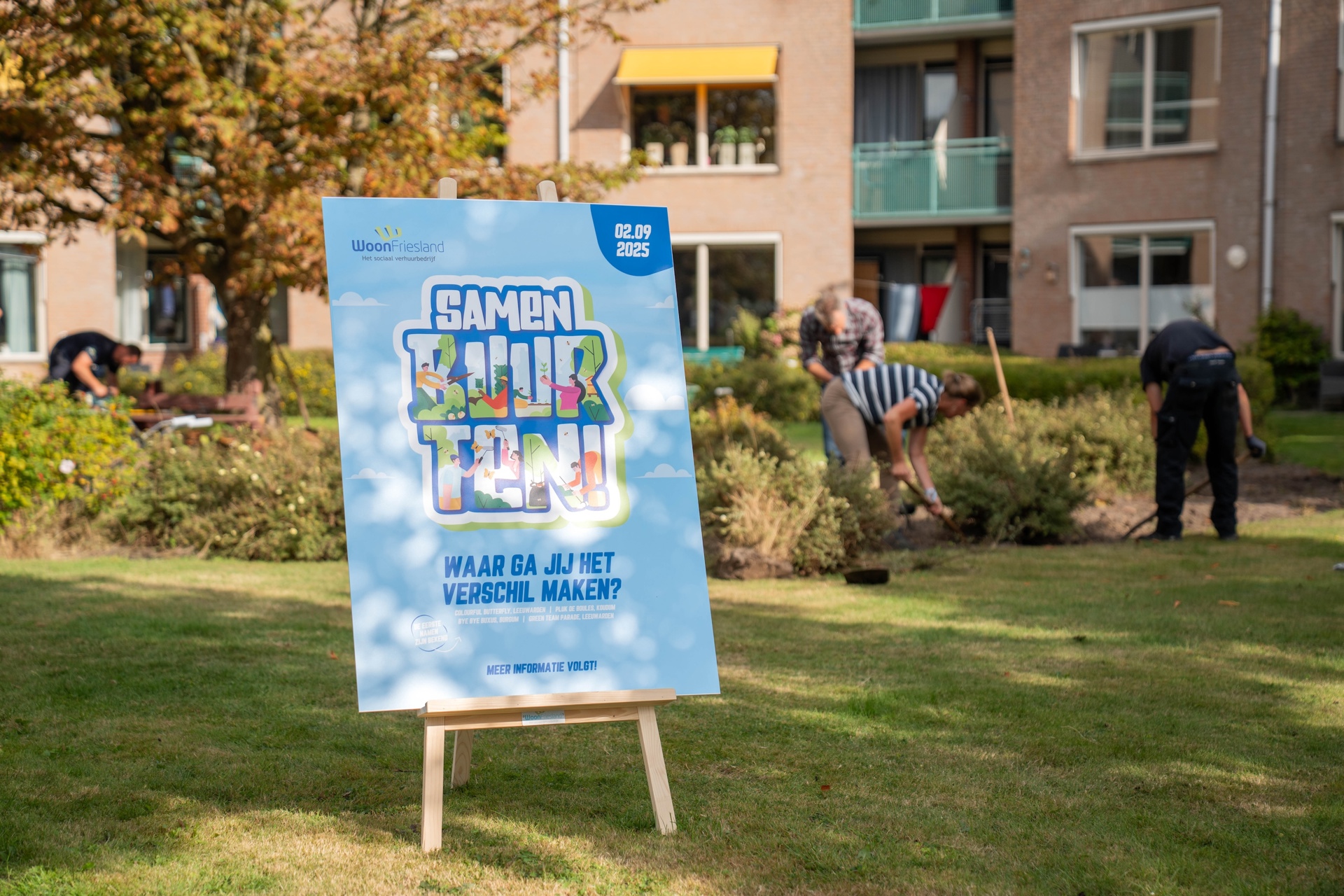 Bewoners en medewerkers van WoonFriesland zij aan zij tijdens Samen Buurten