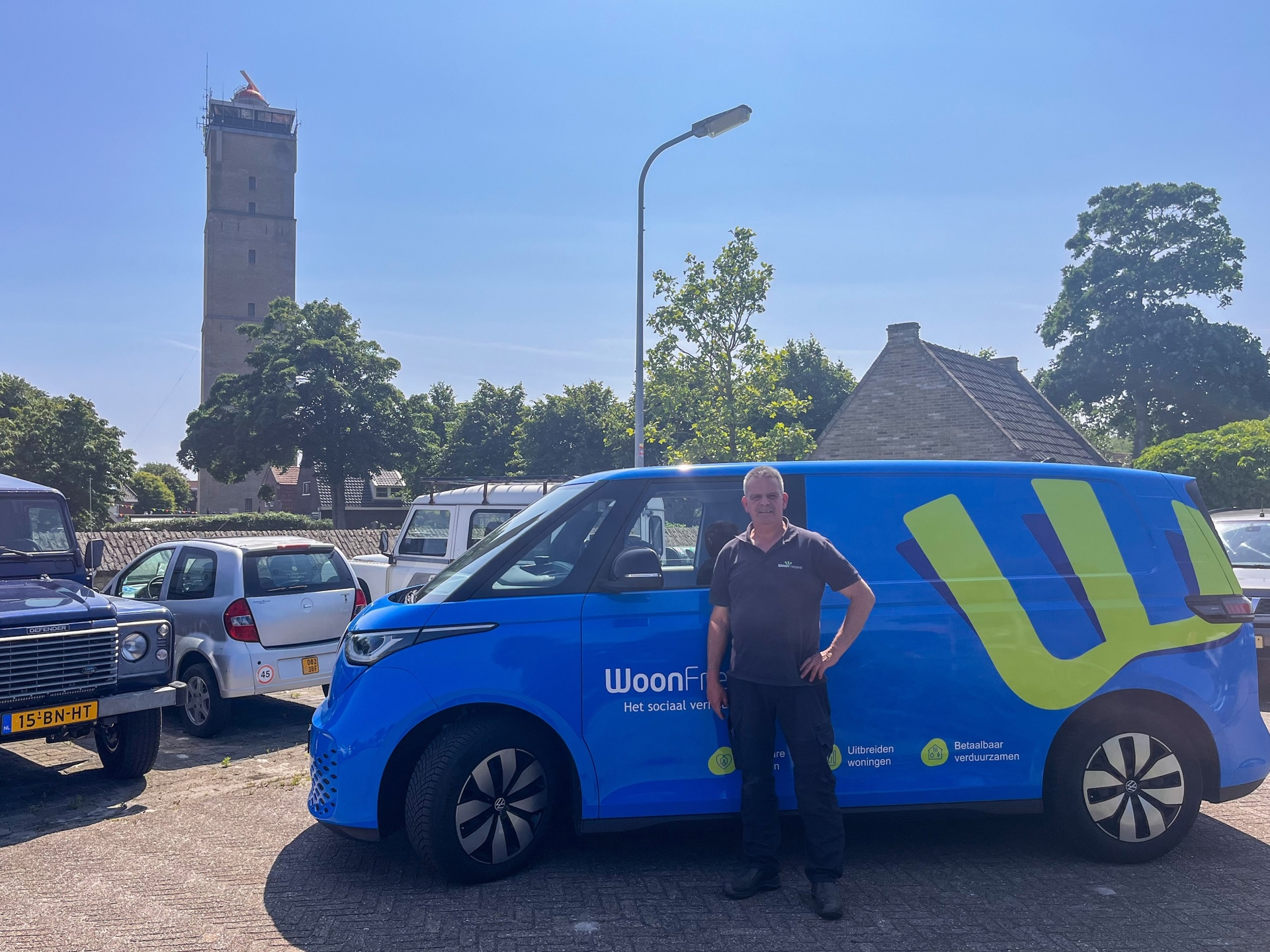 Zo is inmiddels bijna 50% van ons wagenpark elektrisch. Onze wijkconsulenten, mutatie-opzichters en buurtbeheerders verplaatsen zich grotendeels elektrisch: met de auto, scooter of fiets. De volledig elektrische ID Buzz op Terschelling is daar een opvallende aanvulling op! Een eiland is bij uitstek geschikt voor een elektrische bestelauto: korte afstanden, overzichtelijke infrastructuur en smalle, historische straatjes. Precies waar de compacte ID Buzz goed tot z’n recht komt. Dankzij het opvallende ontwerp weten bewoners bovendien meteen dat we in de buurt zijn.
