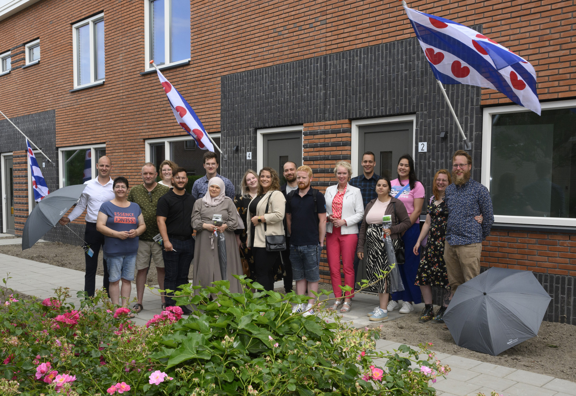 Met een grote glimlach op hun gezicht ontvingen de eerste bewoners van de 19 sociale nieuwbouwwoningen van It Skûlplak in Sneek donderdagochtend 13 juli de sleutel van hun nieuwe thuis. De woningen zijn voor starters en kleine gezinnen gebouwd. Samen met Henk Dedden van Friso Bouwgroep heette onze directeur-bestuurder Sigrid Hoekstra alle kersverse bewoners van harte welkom.