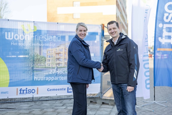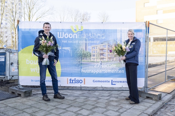 Met de onthulling van een groot bouwdoek trapten WoonFriesland en Friso woensdag 26 februari de bouw af van 27 nieuwe appartementen aan de Aldlânsdyk in Leeuwarden. Deze mijlpaal betekent de start van een ambitieus plan van het sociaal verhuurbedrijf om de komende jaren 2000 woningen toe te voegen.