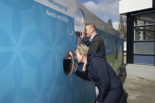 Gluren bij de buren. Het kan sinds maandag ongegeneerd in Heerenveen. Aan het Burgemeester Kuperusplein biedt een bijzondere bouwschutting rondom de nieuw te bouwen woontoren nieuwsgierige voorbijgangers alvast een kijkje op de bouwplaats. Met diverse kijkgaten geven wij, samen met Friso Bouwgroep, omwonenden en het winkelend publiek de kans om live mee te kijken. Via de kijkgaten zijn de inmiddels gestarte bouwwerkzaamheden goed te volgen. De schutting vermeldt bovendien hoe de uiteindelijke woontoren eruit komt te zien en wanneer welke werkzaamheden plaatsvinden.