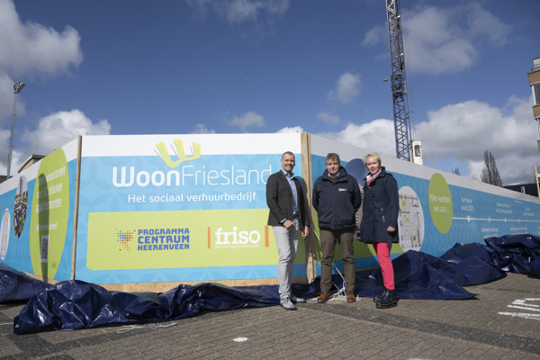 Maandagmiddag 27 maart onthulden Sigrid Hoekstra, onze directeur-bestuurder, Henk Dedden, directeur Friso Bouwgroep en wethouder Jaap van Veen van de gemeente Heerenveen de bijzondere bouwschutting.