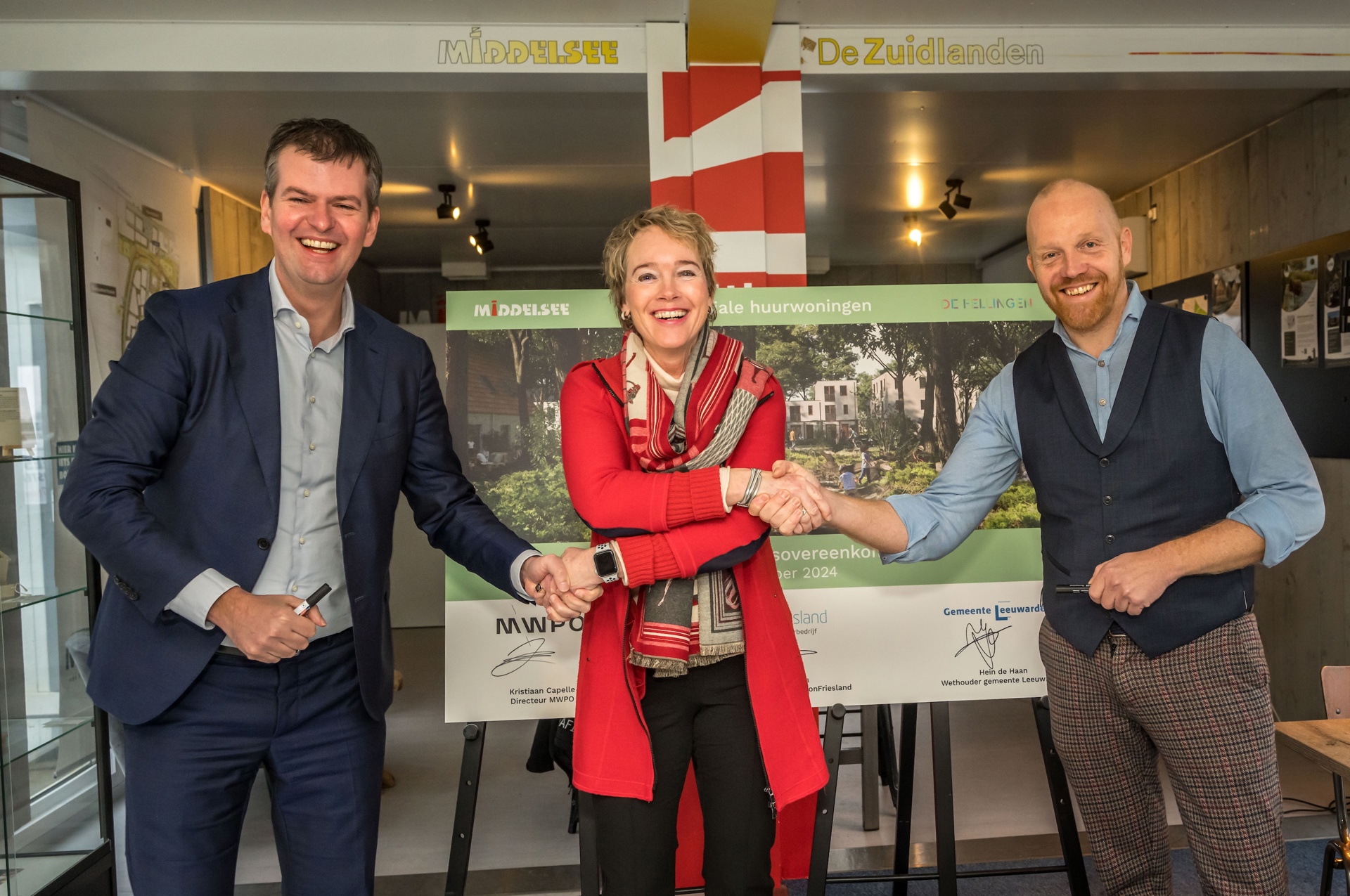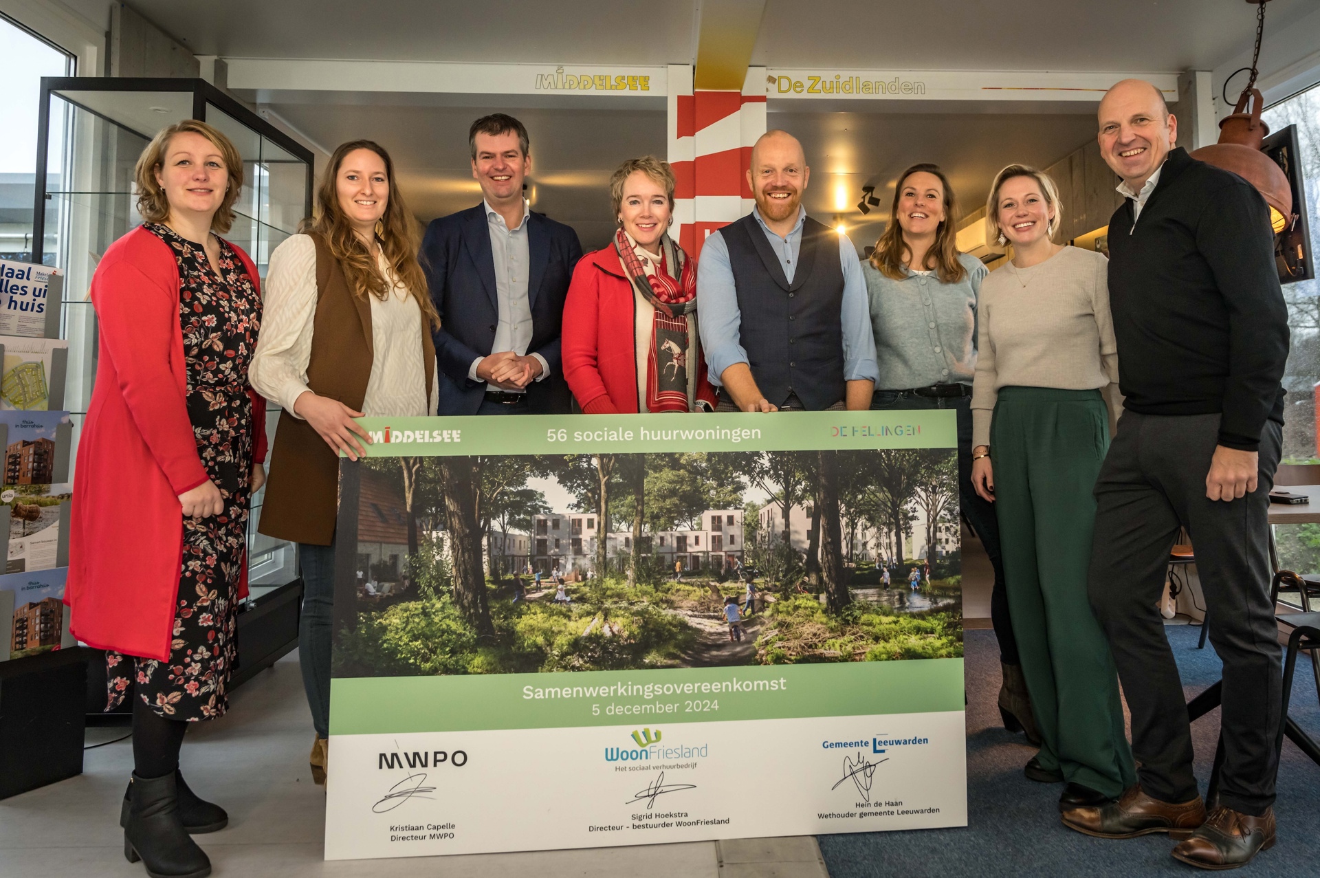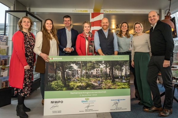 Donderdag 5 december zetten we onze handtekening onder de samenwerkingsovereenkomst voor de bouw van 56 duurzame sociale huurwoningen in De Fellingen in Leeuwarden.