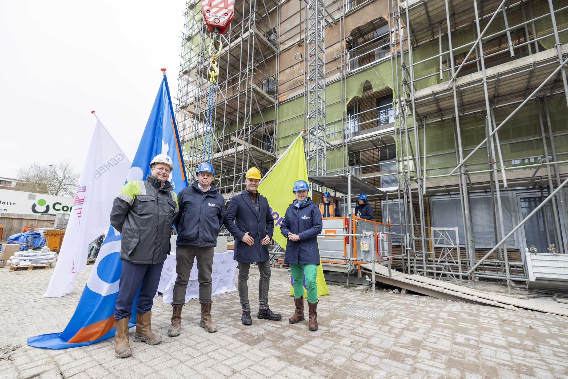 Ook Henk Dedden, algemeen directeur van Friso Bouwgroep, is zeer content met het behalen van het hoogste punt. ‘Exact een jaar geleden op 6 maart 2023 gingen de eerste palen de grond in. In een jaar tijd is deze toren snel gerealiseerd. Om dat op zo’n korte termijn veilig te kunnen doen op deze drukke plek in het winkelcentrum van Heerenveen, vergt een nauwgezette logistieke planning. Dat is iets waar we als bouwers trots op zijn.’